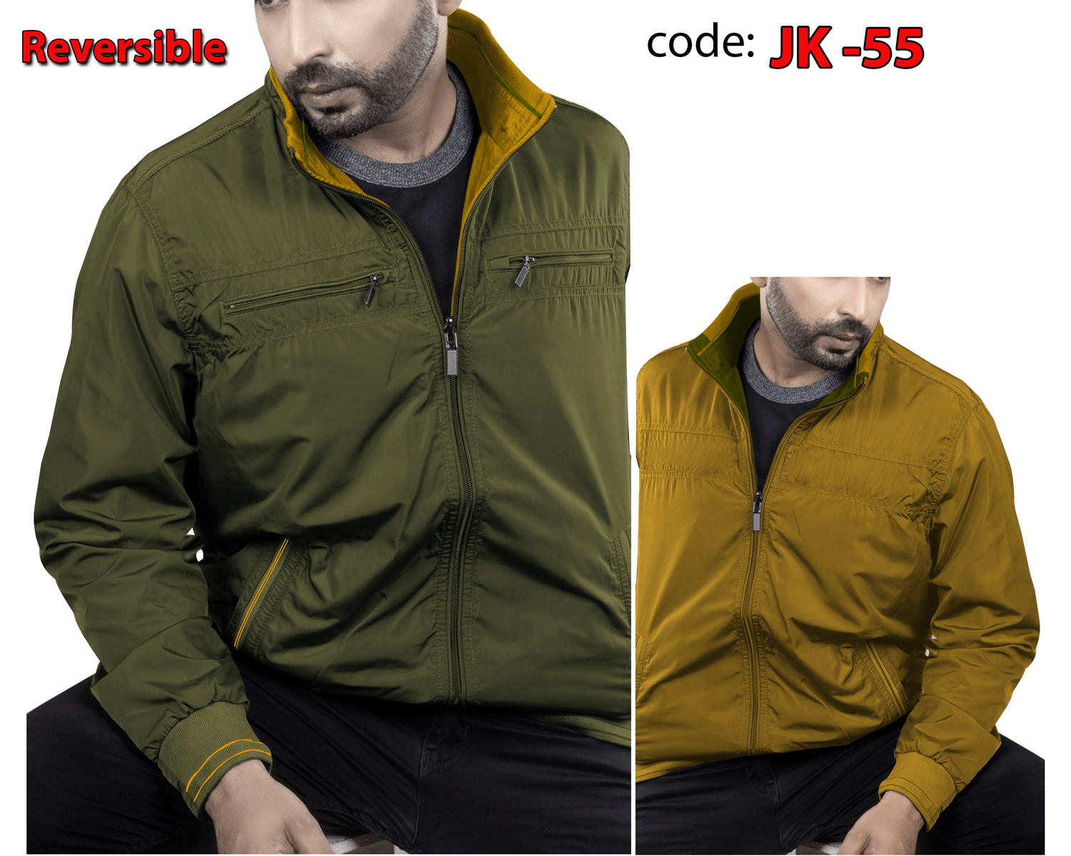 এই জ্যাকেটের সবচেয়ে বড় বিশেষত্ব হলো এটি দুই দিকেই পরা যায়।